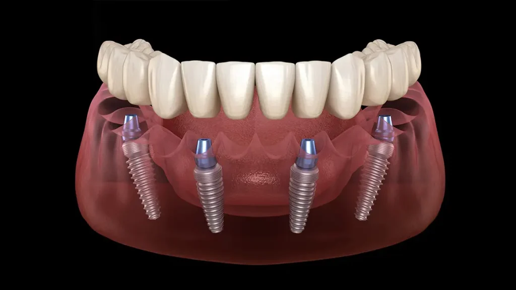 All-on-4, diş kaybı yaşayan hastalar için uygulanan bir implant tedavisi yöntemidir. Bu yöntemde, üst ya da alt çene bölgesindeki tüm dişler implantlarla desteklenir ve üzerine sabit bir protez uygulanır. All-on-4 yöntemi, tek seanslık bir işlemle hastanın ağız yapısına uygun protez yapılabilmesine olanak tanır.